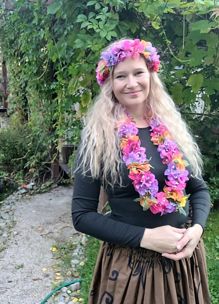 Taiga Rootsin tanssinohjaajasi Tytti on tanssinut polynesialaisia tansseja vuodesta -97. Hän on opiskellut tansseja niiden syntyseuduilla Tahitilla, Havaijilla ja Cook-saarilla ja ylläpitää osaamistaan aktiivisesti kansainvälisten opettajien kursseilla. Polynesialaisia tansseja Tytti on ohjannut yli 20 vuotta. Fusion Bellydance ohjaaja-opinnot valmistuivat v. 2022.
